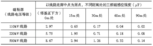 輸電線路周?chē)a(chǎn)生的磁場(chǎng)水平與線路中負(fù)荷電流的大小成正比例關(guān)系。表1顯示了美國(guó)邦維爾*(BPA)關(guān)于各種型式高壓架空輸電線附近的磁場(chǎng)水平實(shí)測(cè)調(diào)查結(jié)果。表1中磁場(chǎng)是對(duì)321條電力線路按年度平均負(fù)荷計(jì)算的平均值。在一年中*高負(fù)荷時(shí)段內(nèi)(約1%時(shí)間),磁場(chǎng)水平約比表中平均水平增加一倍。