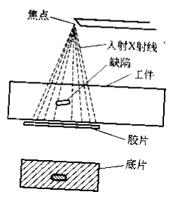 射線照相法是根據(jù)被檢工件與其內(nèi)部缺陷介質(zhì)對射線能量衰減程度的不同,使得射線透過工件后的強(qiáng)度不同,使缺陷能在射線底片上顯示出來的方法。如圖2所示,從X射線機(jī)發(fā)射出來的X射線透過工件時,由于缺陷內(nèi)部介質(zhì)對射線的吸收能力和周圍完好部位不一樣,因而透過缺陷部位的射線強(qiáng)度不同于周圍完好部位。把膠片放在工件適當(dāng)位置,在感光膠片上,有缺陷部位和無缺陷部位將接受不同的射線曝光。再經(jīng)過暗室處理后,得到底片。然后把底片放在觀片燈上*可以明顯觀察到缺陷處和無缺陷處具有不同的黑度。評片人員據(jù)此*可以判斷缺陷的情況。