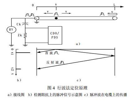 其中L為電纜長度,V為脈沖波在電纜中的速度,τ為兩個脈沖的時延。OWTS振蕩波電纜局部放電檢測和定位裝置采用該原理對電力電纜局部放電進行定位,如圖5所示。