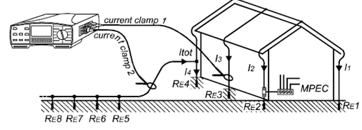 只有一個(gè)接地電極,因此測(cè)量非常簡(jiǎn)單。建議使用4線測(cè)試法而不是3線測(cè)試法,因?yàn)?線測(cè)試法不用考慮測(cè)試夾的接觸電阻以及待測(cè)電極表面的生銹情況,這些不會(huì)對(duì)4線測(cè)試法造成影響。